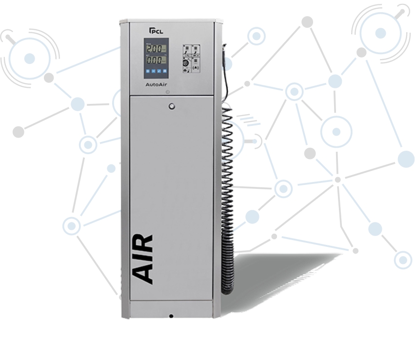 Elektronicky řízený automatický hustič pneumatik pro osobní automobily vhodný pro instalace na veřejných i neveřejných čerpacích stanicích bez nutnosti centrálního rozvodu vzduchu.